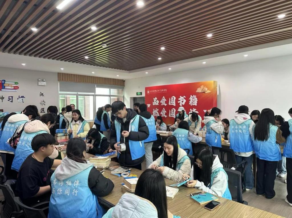 活动现场,在协会指导员黄老师的专业指导下,志愿者们迅速进入状态,分工明确、默契协作,有序开展志愿服务工作。大家化身“图书小管家”,认真对图书馆内的旧书、闲置书籍进行逐一清点、分类整理,将散落的书籍按学科类别、借阅频率有序归位;针对封面破损、页角卷边、装订松动的书籍,志愿者们细心擦拭污渍、用胶带修补破损部位、抚平卷边页面,细致入微地呵护每一本图书,用耐心与责任为书籍“焕新”,让每一本好书都能重新发挥价值,为师生营造整洁、有序的借阅环境。